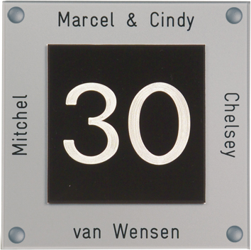 Gravoglas is een luxe en tegelijk stevige kunststofsoort (3 mm dikte), met de uitstraling van gekleurd glas, welke uitstekend geschikt is voor gebruik in en rondom uw woning. De tekst wordt in alle gravoglas-naamborden gegraveerd, waardoor uw naam niet weg kan slijten of vervagen. Het bijzondere aan gravoglas is dat het aan de achterzijde ingegraveerd wordt, dit in tegenstelling tot andere kunststofsoorten. Hierdoor blijft het materiaal aan de voorzijde glad en krijgt het een hele luxe uitstraling. Tot slot: de gravoglas-naamborden zijn standaard voorzien van schroefgaten (tenzij anders vermeld) en worden geleverd met afstandbusjes en afdekdopjes waardoor u het naambord eenvoudig op een korte afstand van de muur kunt monteren. Gravoglas een zeer luxe kunststofsoort dat tegen een stootje kan!