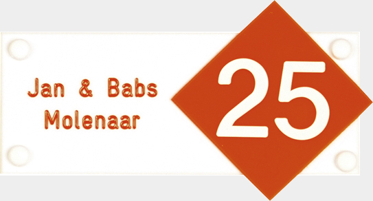 Perspex is een stevige kunststofsoort (3 mm dikte), welke uitstekend geschikt is voor gebruik in en rondom uw woning. De tekst wordt in alle perspex-naamborden gegraveerd, waardoor uw naam niet weg kan slijten of vervagen. De transparante perspex naamborden worden aan de achterzijde ingegraveerd (waardoor de voorkant glad blijft) en de gekleurde perspex naamborden worden aan de voorzijde ingegraveerd. Tot slot: de perspex-naamborden zijn standaard voorzien van schroefgaten (tenzij anders vermeld) en worden geleverd met afstandbusjes en afdekdopjes waardoor u het naambord eenvoudig op een korte afstand van de muur kunt monteren. Perspex een luxe kunststofsoort dat tegen een stootje kan!