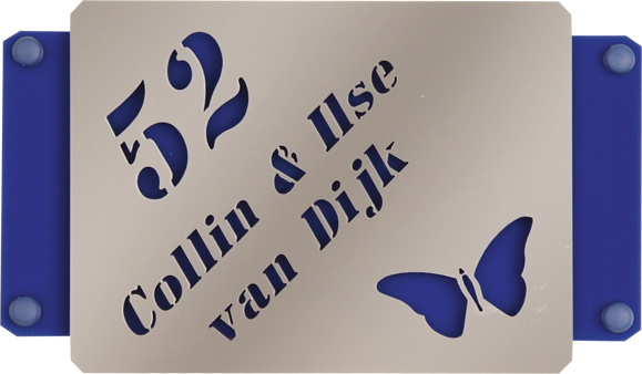 Sjabloonstyle is een unieke serie van het materiaal perspex. Perspex is een stevige kunststofsoort (3 mm dikte), welke uitstekend geschikt is voor gebruik in en rondom uw woning. In de serie sjabloonstyle worden twee kleuren perspex op korte afstand van elkaar gemonteerd. De tekst wordt in de serie sjabloonstyle door de bovenste plaat (de tekstplaat) heen gegraveerd, waardoor de onderliggende plaatkleur (de achterplaat) verschijnt. Uw naam kan hierdoor niet weg slijten of vervagen. Tot slot: de naamborden uit de serie sjabloonstyle zijn standaard voorzien van schroefgaten (tenzij anders vermeld) en worden geleverd met afstandbusjes en afdekdopjes waardoor u het naambord eenvoudig op een korte afstand van de muur kunt monteren. Sjabloonstyle: een unieke, luxe kunststofsoort die tegen een stootje kan!
